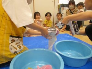 「冷たくてきもち~💎💎💎」「ぜんぜん溶けないよ!」