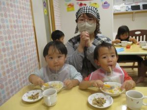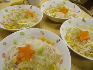 星形の人参と、色のついた素麵に大喜び!!🥰