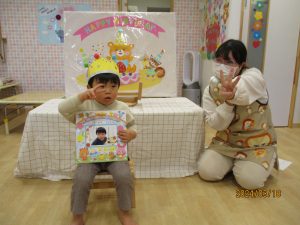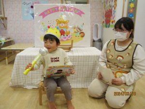 「お誕生日のお友達はだれかな~?」の問いかけに、「ぼくだよ~!」と元気いっぱい