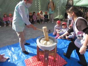 とても力強く杵でお餅をつくゆり組さんに成長を感じました。