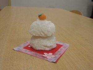 先生たちは玄関に飾る大きな鏡餅を力を合わせて作りました。