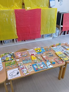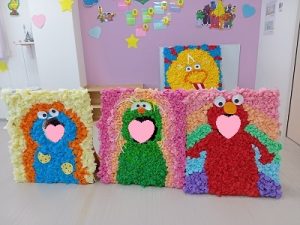 3・4・5歳児のお友だちが制作した『セサミストリートの顔ハメパネル』はみんな嬉しそうに顔をハメていました!