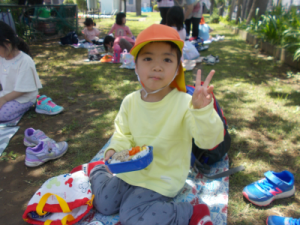 お友達とお弁当を見せ合いながら、お家の人に作ってもらったお弁当を嬉しそうに食べ、全員完食していました♪