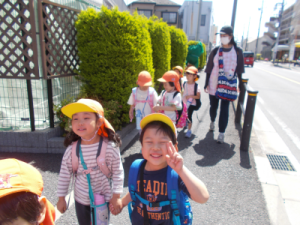 「公園に着いたらお弁当を食べたいね!」とお友達や先生とお弁当の話題で盛り上がりながら頑張って歩きました。