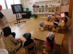 今日はふじ組になり、初めての食育活動を行ないました。
