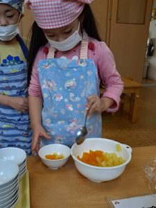 混ぜている時は「おいしくなーれ」の声掛けと共に甘い匂いが広がってきました。