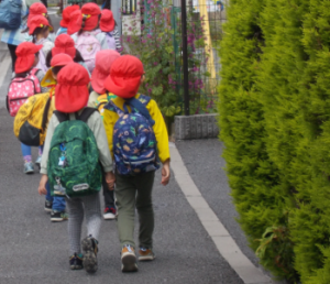 リュックを背負って、普段よりも荷物が重くても元気に歩いていたゆり組さんです。