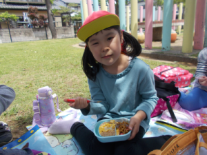 保育園に登園してくると「お弁当、何が入っているの?」「レジャーシートはすみっコぐらし持ってきたよ♪」など、朝からピクニックの話題でもちきりでした。