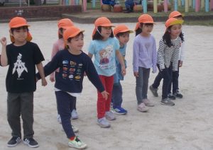 遊んでいる途中から「お弁当、まだ?」とお弁当を楽しみにしていた子ども達、お弁当の声掛けをすると嬉しそうに準備をして、お当番の掛け声でお弁当を食べ始めました。
