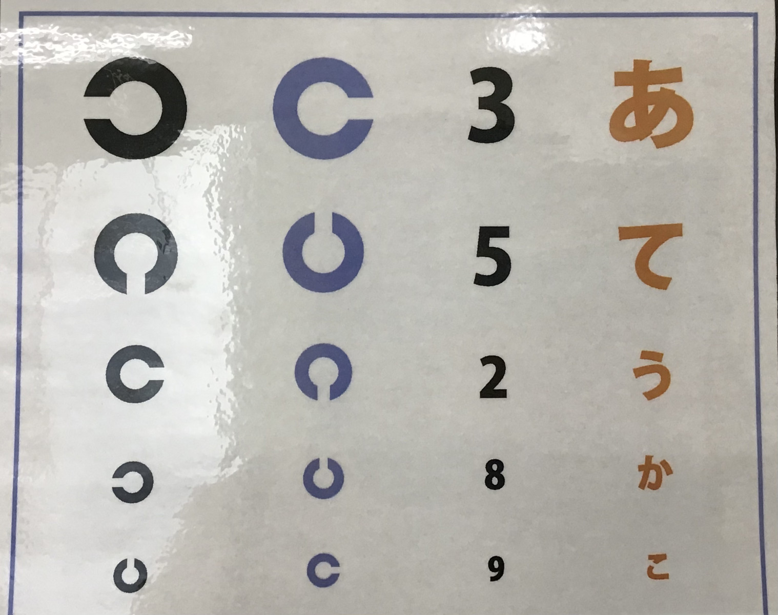 目について少し知れたところで、視力測定を模した遊びを行いました。