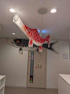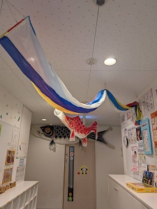 未満児0.1才児は各クラスでこいのぼりをみたり