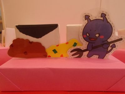 子どもたちにも分かりやすく伝えられるよう、今回は空き箱やペットボトルを使用して