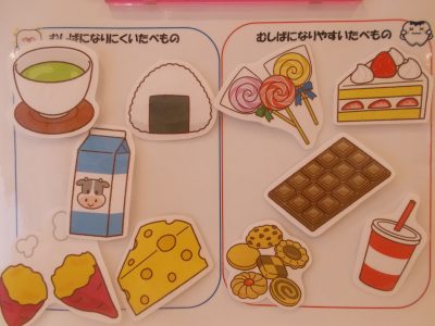 白い歯が黒い虫歯に変わると「虫歯になるから歯磨きしないとだめだよ!」と子供たち同士で話していました。