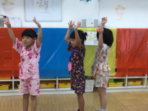 ゲームを楽しんでいる間には、ばら・ふじの部屋とたんぽぽの部屋に分かれてそれぞれで、盆踊り『アンパンマン音頭と月夜のポンチャラリン』を楽しみました!