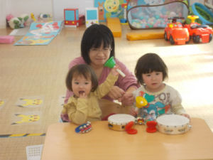 出来上がった、まんまるマラカスを持って、みんなで「どんぐりころころ」を歌いながら、ならして遊びました♫