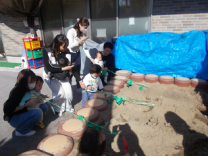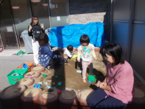 あれ?! お砂場からに葉っぱが。。。 みんなでひっぱってみよう! よいしょ!よいしょ!