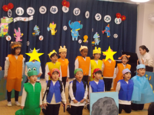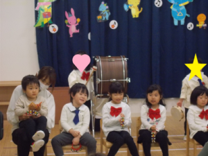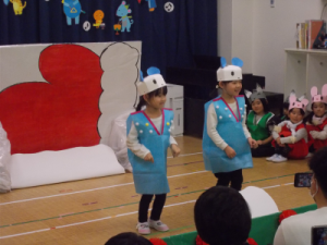 ふじ組は、ミッキーマウスマーチの合奏と、三匹の子豚の劇とダンスを行いました。