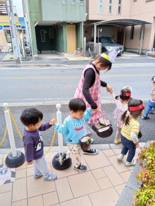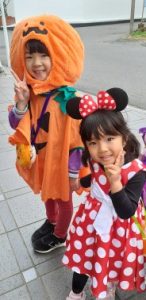 その後は、ご近所を仮装しながらお散歩しました。すれ違う地域の方にも 「ハッピーハロウィン♫」