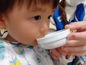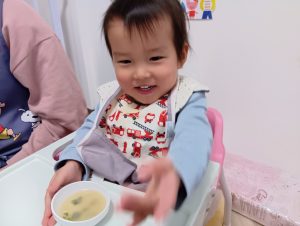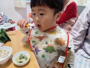 さっき触ったほうれん草はどんな味だろう?とお味噌汁に挑戦していました!