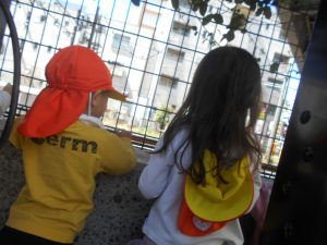 〈たんぽぽ組とすみれ組の散歩の様子〉