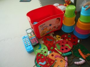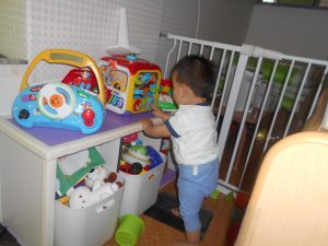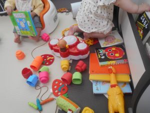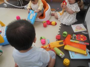 子どもたちは園生活に少しずつ慣れてきて、音の出るおもちゃがお気に入りです。音が出ると体を揺らして楽しみます♪
