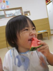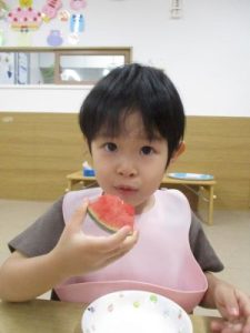 切ってもらったスイカは、給食の時間に美味しく頂きました💕