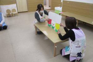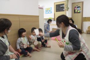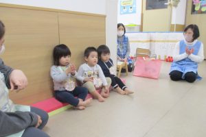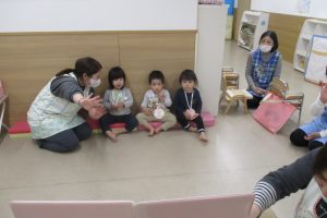 🌸進級式 2025/04/08 4月1日(火)進級式を行いました。 お休みの子もいて、少人数でしたが可愛い進級メダルをかけてもらい ちゅうりっぷの歌をうたいながら、赤・白・黄色のちゅうりっぷが咲き ちゅうりっぷの花の影からこぶた・たぬき・きつね・ねこが登場して 「こぶたぬきつねこ」をうたいながら笑顔いっぱいのパネルシアターを楽しみました。