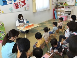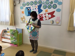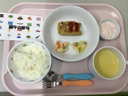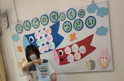 「端午の節句」 2024/05/07 🎏 「端午の節句」の集いを行いました 🎏 保育士から、端午の節句の由来を聴いたり、 クイズに答えたりしました。 金太郎になってこいのぼりにまたがる 子どもたちの作品を紹介しました。 「🎵こいのぼり🎵」の歌を元気よく歌い、ペープサート「ボーリーのぼうけん」を楽しみました。 昼食は 「こいのぼりハンバーグ、ポテトサラダ、コーンポタージュ、 ヨーグルト」でした。 💕とっても美味しかったね😋
