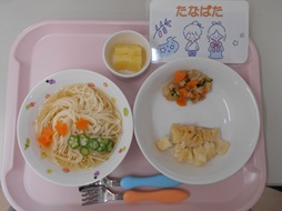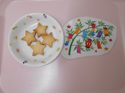 本日の昼食とおやつは、お星さまが輝くおいしい七夕メニューでした。
