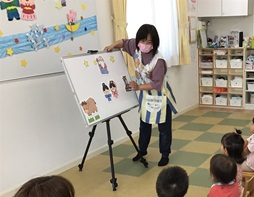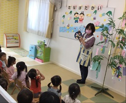 「たなばたさま」のうたを2番まで歌ったら、パネルシアターで七夕の話を楽しみました。