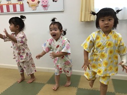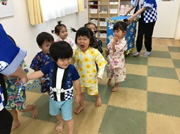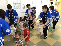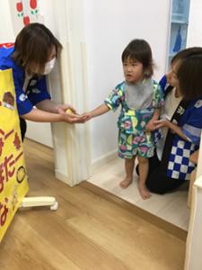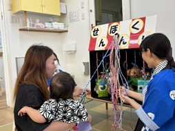 午後は保護者の方と一緒にボーリングや千本くじ、うちわの製作をして