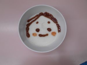 おやつは「おかめのミルクプリン」