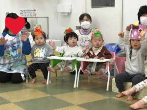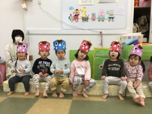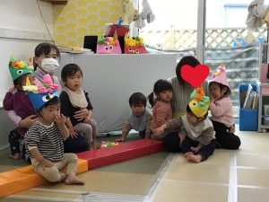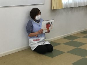 保育者のお話を聴きました。せつぶん?はる?おに?まめまき?