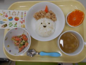 昼食は、「鬼の納豆そぼろ丼」