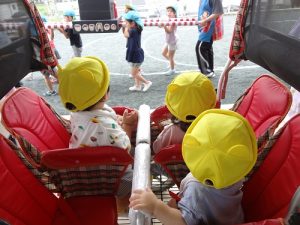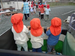 夏祭り練習、見学😊 2022/07/14 ちゅうりっぷ組さんとたんぽぽ組さん、 夏祭り練習の見学をしていました💕 音楽にノリノリな子、じっと見つめる子・・・様々でした😊 ばらゆり組のお兄さんお姉さん、かっこよかったね♪