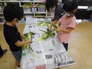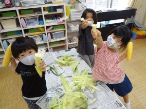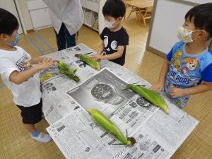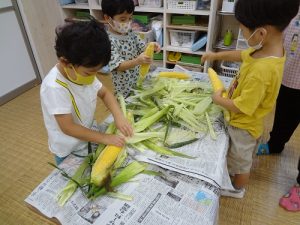 おやつに食べる「ゆでとうもろこし」の皮むき(下処理)をしました🌽