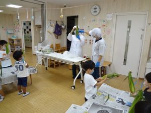 まず皮をむく前に「手触り」「におい」「色」がどうなのか体験😊
