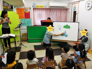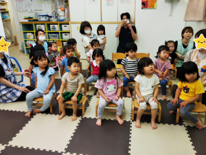 そしてスカーフを振りながら、「たなばたさま」と「きらきらぼし」をみんなで歌いました。★