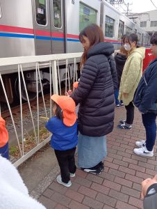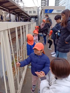 ここは目の前で電車を見ることができるので、お友だちの大好きなスポットです。