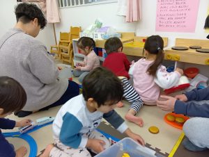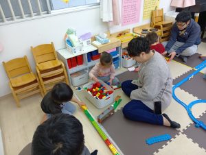 プラレールにおままごと、お友だちと一緒に遊ぶのも上手です。