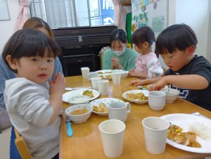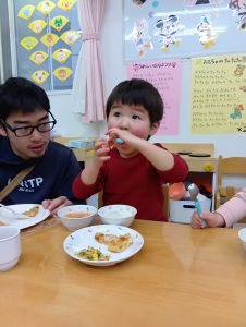 一緒にお給食いただきます👏