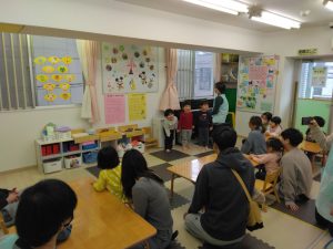すみれぐみは登園後すぐに朝の会がありました。