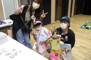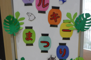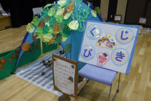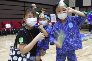 ~ミルキーまつり~ 2022/09/12 9/3(土)全日警ホールにてミルキーまつりを行いました。 今年は、森をテーマに行いました。 保護者の方にもご参加いただき、まつりの雰囲気に合わせ浴衣や甚平姿で参加している子どももいました。 各コーナー(わなげ、まとあて、さかなつり、ボーリング、くじびき)の ゲームを楽しんだり、盆踊りを踊ったりしました。 子ども達が好きな色や模様を自由にイメージして作った虫の作品の展示もしました。