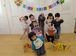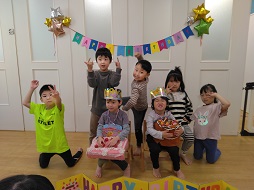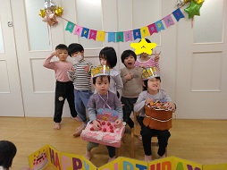 🍰3月の誕生会🎉 2025/03/26 ☆3月のお誕生会☆ 26日に3月生まれの誕生会が行われました。 3月は、男の子2名。みんなからお祝いされると嬉しくて、最高の笑顔で「ありがとう!」を言ってくれました☻ 今回の出し物は、しりとりや魔法のレンジが登場して卵をにわとりさんに変身させたり最後は、ケーキがでてきたりと盛りだくさんな内容でした。みんなとても楽しそうでしたよ!