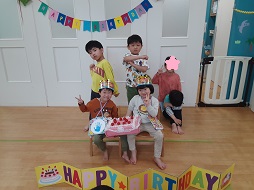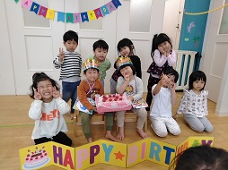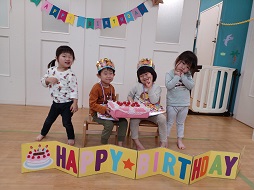 4月は、男の子2名。ちょっぴり恥ずかしそうにしながらも、みんなからお祝いされてニコニコ笑顔を浮かべていました☆