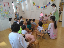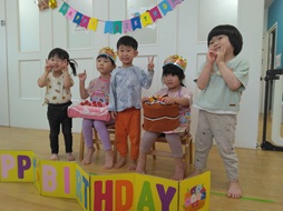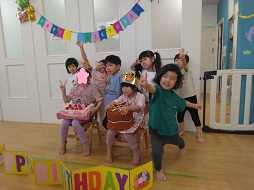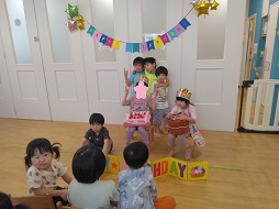 5月は、女の子2名。みんなの前に座って、照れながらも素敵なニコニコ笑顔でお祝いをされていました😊