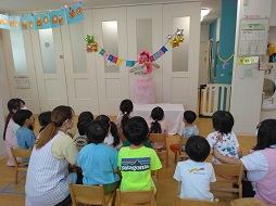 今回の出し物は、原宿出身の素敵な特別(!?)ゲストによる手品ショー🎵と〇×ゲーム大会!手品では目を釘付けにしながら水が消えちゃうマジックや腕にペンが刺さるマジックを見て驚いたり声をあげたり、楽しんでいる様子でした♪