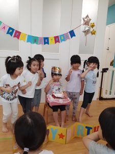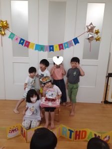 7月は女の子1名。恥ずかしそうにみんなの前に座っていましたが、「おめでとう!」とみんなから声を掛けられニコニコの可愛い笑顔を見せてくれました。