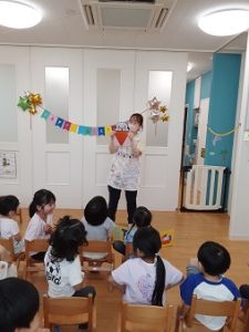 今回の出し物は、「なんのアイスがでてくるかな?🍦というカードシアターで、コーンの中から色んな味のアイスが登場するのですが、途中で爆弾だったりおじさん!?が飛び出してみんな大爆笑。楽しい誕生会となりました☆彡