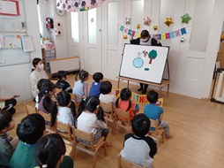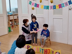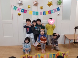 🎂3月誕生日会🎉 2026/03/27 🌟3月18日に3月のお誕生日会を行いました🌟 今年度最後のお誕生日会! 今月は1人のお友達がお誕生日でした♪ 質問をしてもらったり、みんなにハッピーバースデーを歌ってもらったりしてとても嬉しそうです☆ お誕生日のお友達とみんなでハイチーズ📷 先生からの出し物は、「金の斧、銀の斧」のパネルシアター。 とっても集中して見て楽しんでいましたよ! 元気に大きくなってね!